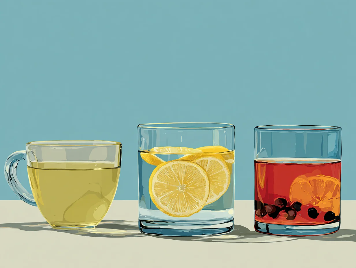 레몬워터: 풍부한 비타민 C가 멜라닌 생성을 억제해 칙칙함을 줄이고, 피부 톤을 밝게 유지합니다. 아침 물 대신 레몬 조각을 넣어 상쾌하게 마셔도 좋습니다.